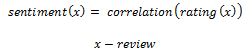 The algorithm starts with the idea that the overall sentiment of a review is equal to the average of all (or most) of the words in the review text. As opposed to the case when we know the individual (word) sentiments and we aim at obtaining the overall sentiment, we are now dealing with a case where these individual sentiments are only partially known, but the overall sentiment is known (or estimated), by passing the review value through the correlation function.